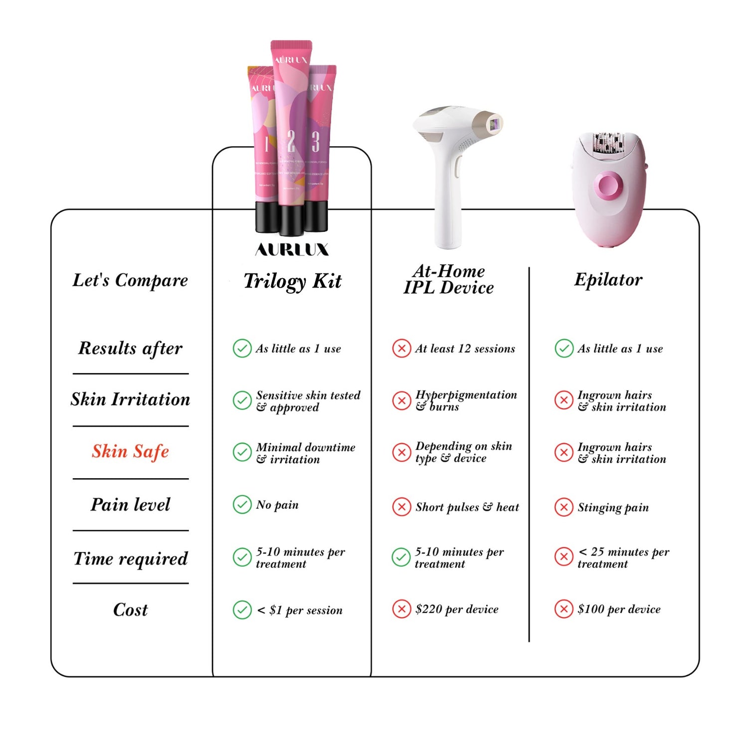 Aurlux Customers Are Ditching Painful Waxing & Expensive Salon Trips for Our Trilogy Hair Removal Kit!
